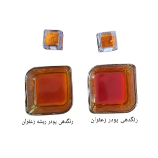 ارگانیک و خالص از پودر شدن ریشه زعفران به دست می آید این پودر رنگدهی کمی دارد